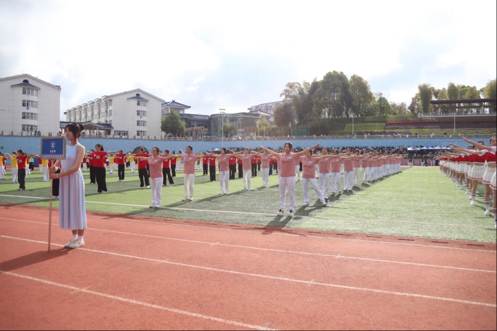 在开幕式文体展演环节,我院民族健身操表演队员身着统一靓丽的服饰,伴随明快动感的节奏,以活力四射的舞姿演绎民族特色和青春风采,既展现了民大学子的青春风采,也展现了我院坚持五育并举、助力学生全面发展的育人成效。