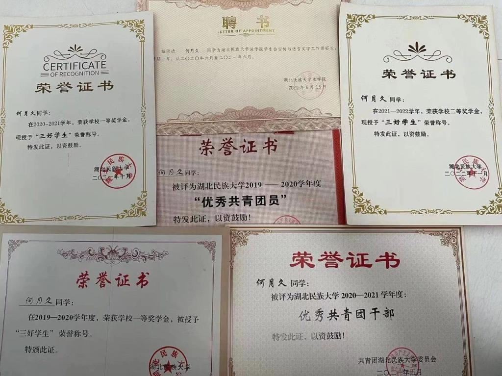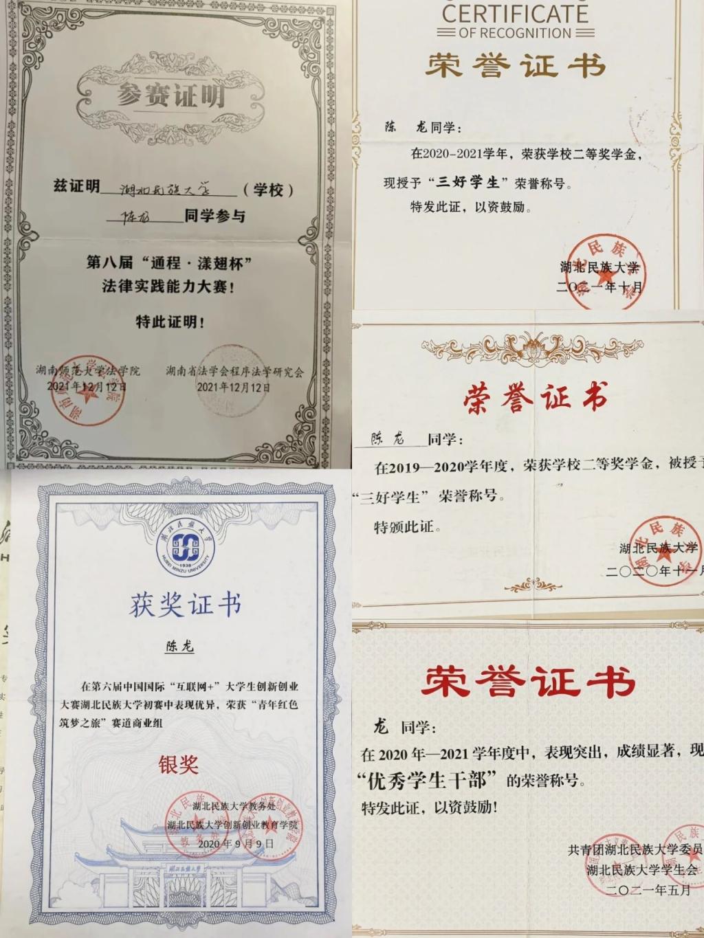 任职经历:先后担任1119401、1119404支部团支书,法学院学生会办公室干事,法学院学生会宣语部部长,法学院辩论队队长,学生党支部助理。