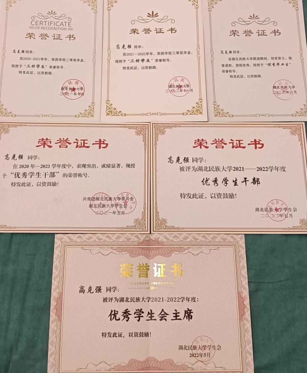 任职经历:先后担任法学院学生会办公室主任,学生会主席。
