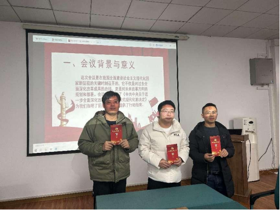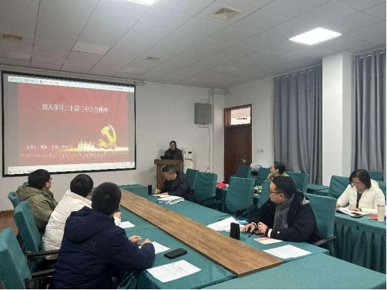 集中学习后,党支部书记邓浩以《深入学习二十届三中全会精神》为题给全体党员讲党课。邓浩同志从会议背景与意义、会议概况与主要议程、重要成果与深化改革重点、党的领导与建设、经济社会发展目标、如何贯彻落实会议精神五个方面深入学习二十届三中全会精神,并要求各位党员应加强学习凝聚共识、深入领会强化担当、狠抓落实联系群众、加强宣传营造氛围,为实现中华民族伟大复兴的中国梦贡献自己的力量。