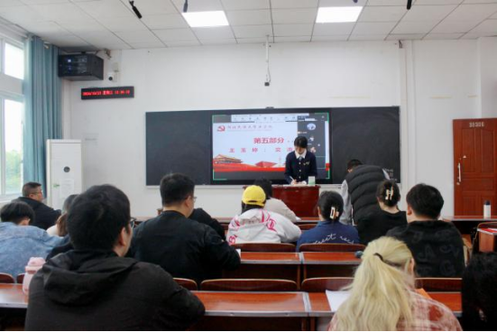 本次党日活动组织了特色实践环节,由法学院党总支副书记黄晓波为全体党员进行“党的二十届三中全会主题教育”。黄晓波书记详细解读了党的二十届三中全会的会议精神,并结合法学院实际情况,就如何贯彻落实会议精神提出了具体要求和措施。他强调,全体党员要深刻领会会议精神,切实把思想和行动统一到党中央的决策部署上来,为推动法学院各项事业的发展贡献力量。
