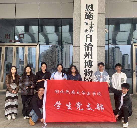 本网讯 (通讯员 彭阳)为大力弘扬英烈精神,缅怀革命先烈,传承红色基因。4月3日,在清明节来临之际,法学院学生党支部、立人六栋功能型党小组组织部分党员、入党积极分子前往恩施州博物馆、恩施市中共鄂西特委旧址开展“缅怀革命先烈 坚守廉洁清明”主题党日特色实践活动,同志们在参观学习中接受红色教育、弘扬革命精神。