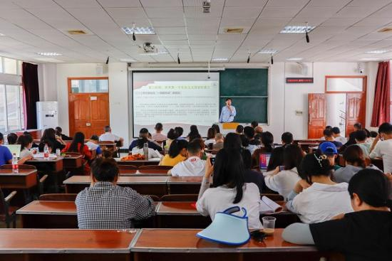 本网讯(记者 沈航/文 见习记者 翁铭位/图)5月5日,我院于9B301教室开展“四史”宣传教育活动,马克思主义学院副教授邱世兵受邀为党员讲授社会主义发展史,我院党总支副书记许宗友担任主持。