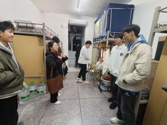 会后,老师们和学生干部组队一同前往博学4栋、立人3栋、立人6栋、立人9栋学生宿舍进行走访,与同学们直接沟通,倾听他们的心声,关注他们的困惑和期望,重点了解了学生在学业规划、心理健康、日常生活等方面的情况,并排查了学生宿舍安全隐患,提醒同学们要营造干净整洁、安全文明的宿舍环境。(责任编辑 彭阳 审核 黄晓波 签发 张明波)