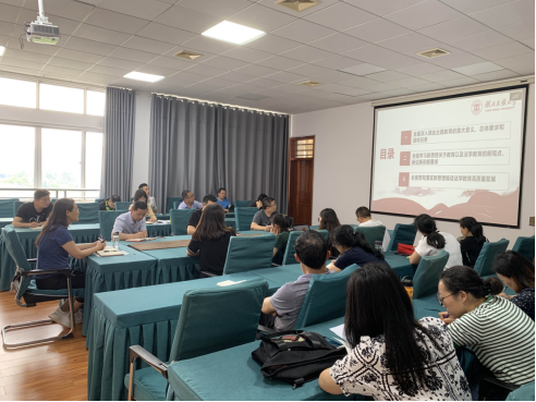 本网讯 为进一步学深悟透习近平新时代中国特色社会主义思想,6月8日,我院党总支书记汪燕围绕“以习近平新时代中国特色社会主义思想为遵循,全面推动法学教育高质量发展”这一主题,于9b314会议室为我院全体教职工开展主题教育宣讲。