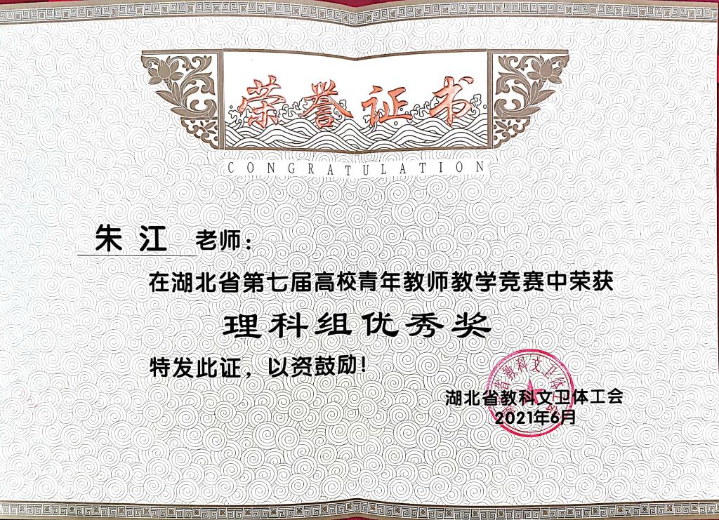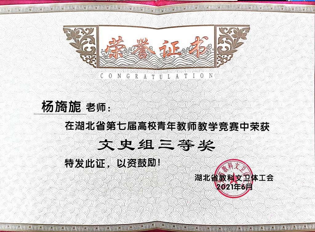 我校文学与传媒学院杨旖旎老师、林学园艺学院朱江老师在湖北省第七届高校青年教师教学竞赛中喜获佳绩,分别荣获文史组三等奖、理科组优秀奖。