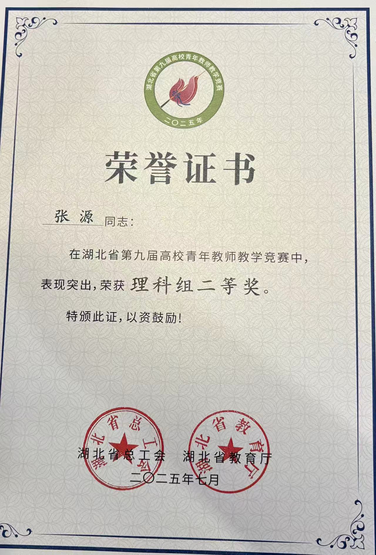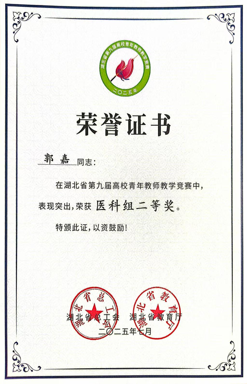 张源和郭嘉分别荣获湖北省第九届青年教师竞赛理科组和医科组二等奖