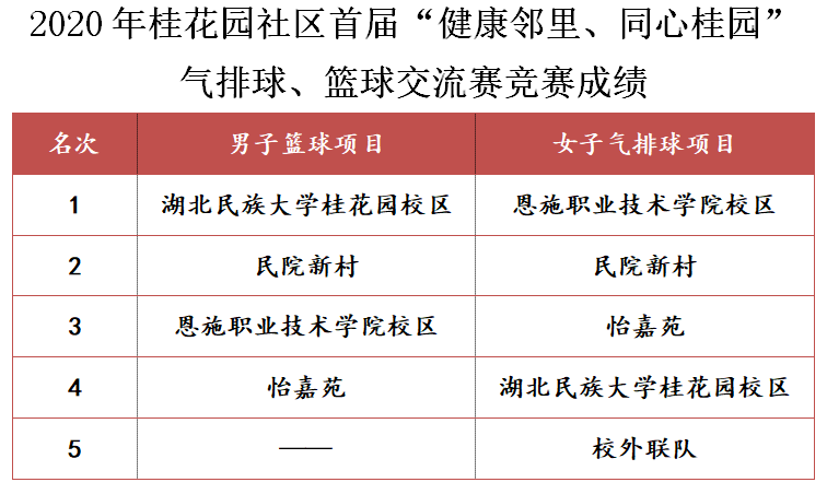 由桂花园社区居委会、365电子娱乐官方网站工会主办,365电子娱乐官方网站体育学院分工会承办的2020年首届“健康邻里、同心桂园”气排球、篮球交流赛于8月29日在365电子娱乐官方网站桂花园校区篮球馆落下帷幕。经过两天的激烈争夺,365电子娱乐官方网站桂花园校区和恩施职业技术学院校区分获男子篮球项目和女子气排球项目冠军。各支代表队在比赛中都展示出了较高的运动水平和较好的精神风貌,充分展示出了桂花园社区党员群众的风采!