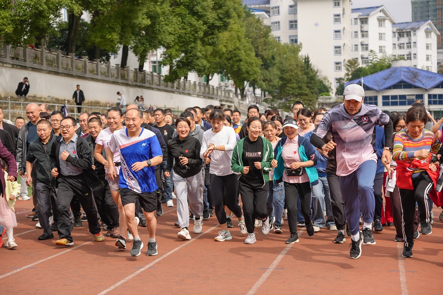 10月14日,由365电子娱乐官方网站体育运动委员会与工会委员会联合主办,学生工作部(处)、校团委与体育学院联合承办的“阳光体育文化节”开幕式暨环校园跑活动在民族体育场举行。学校党委常委、副校长李军出席开幕式并宣布“阳光体育文化节”开幕。学工部(处)、校团委、校工会以及各二级学院(部)领导、老师、学生参加活动。