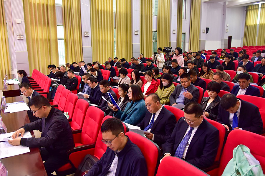 校长顿祖义代表学校向大会报告工作,他回顾了2023年学校各项工作,部署了2024年主要工作任务。报告指出,2023年,学校以习近平新时代中国特色社会主义思想为指导,全面贯彻党的二十大和省第十二次党代会精神,深入推进党建引领提升行动、人才培养提质行动、学科建设攻坚行动、综合改革赋能行动、幸福校园缔造行动,克难攻坚、勇毅前行,高水平应用型大学建设迈出坚实步伐。过去一年,学校坚持和加强党的全面领导,以高质量党建引领事业高质量发展,在国家级科研项目申报、学报建设、科研到账经费、学科建设、校园环境、评价改革、治理效能和思政教育等方面实现新的突破,各项工作迈上新的台阶。