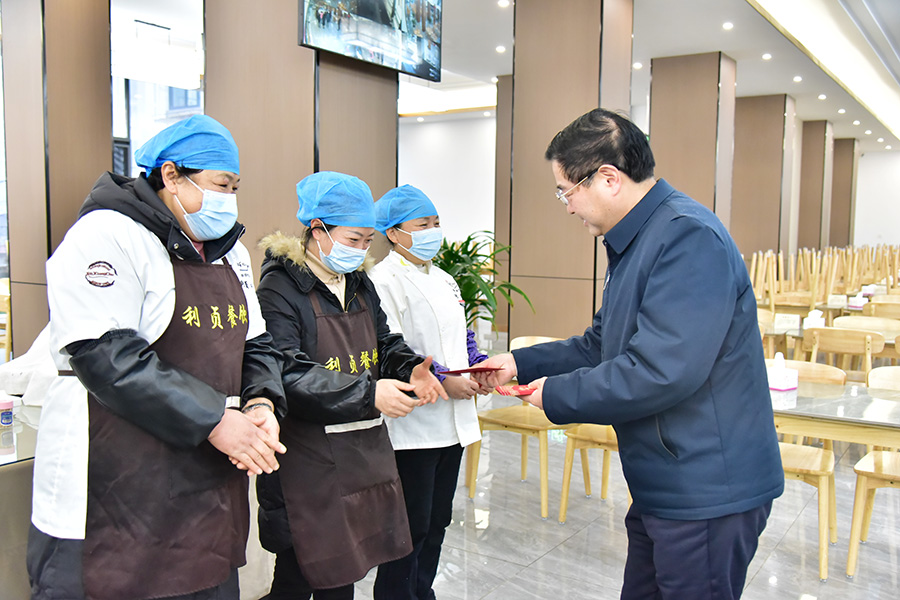 1月24日,学校党委副书记邓磊来到桂花园校区和附属民大医院,看望慰问春节期间坚守岗位的一线工作人员,代表学校给大家送去新春的祝福和节日的问候。