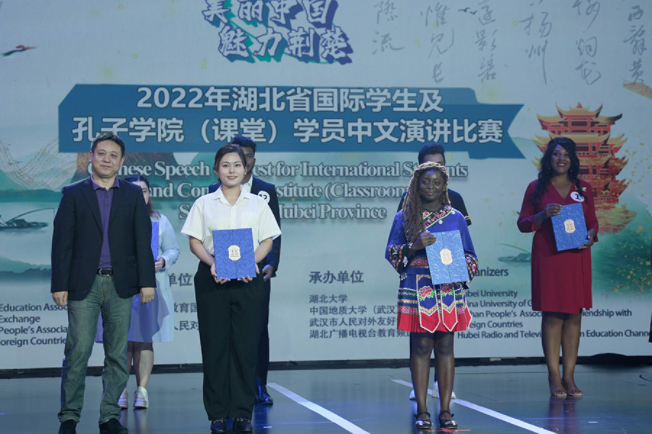 8月12日下午,由湖北省教育国际交流协会、湖北省人民对外友好协会主办的“2022年湖北省国际学生及孔子学院(课堂)学员中文演讲比赛(决赛)”在湖北广播电视台举行。我校参赛的两名国际学生表现优异,获得三等奖、最佳才艺奖、优秀奖,国际教育学院陈春红老师获得“优秀指导教师”称号。