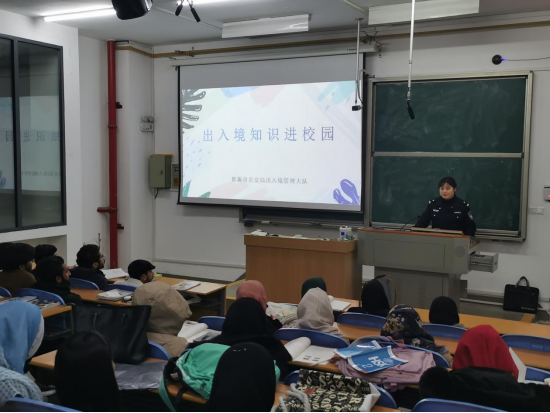 讲座伊始,出入境管理部门的警官详细讲解了出入境基本常识。从签证的种类、有效期限,到国际学生在居留期间需注意的出入境政策法规,警官用生动的案例和通俗易懂的语言,让国际学生们清晰地了解了在华学习期间如何合法合规地出入国境,保障自身合法权益。