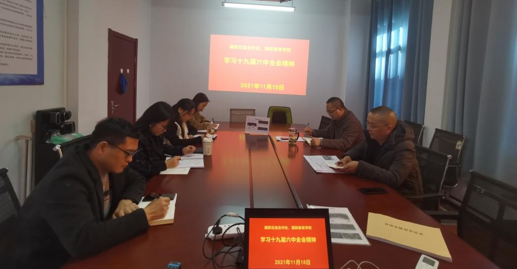 11月18日,国际交流合作处/国际教育学院举行政治理论学习,专题学习十九届六中全会精神,全体教职工参与,国际交流合作处党支部书记李元胜主持学习。