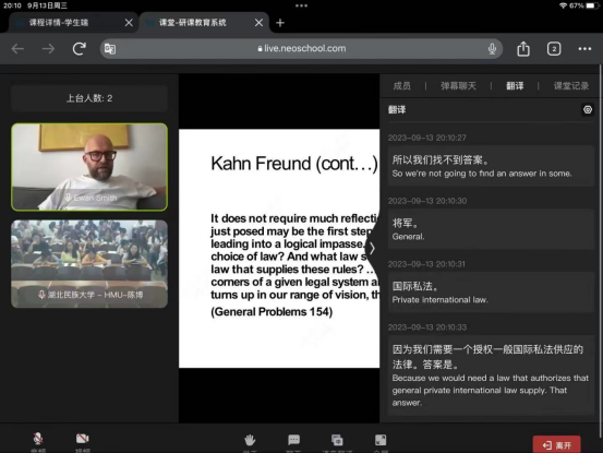 首先,由国际合作交流处罗永健处长致辞。罗处长祝贺365电子娱乐官方网站引进的第一门国际优质课程《国际私法》,在学校、学院和相关部门的高度重视和大力支持下如期开课。他指出,该项目贯彻了习近平总书记在2021年4月考察清华大学时重要讲话精神,创造性地在国际交流合作上拓展新渠道,引进优质国际教育资源,有利于促进学校国际前沿交叉学科的教育教学及科研合作高质量发展,助力“双一流”学科建设,培养创新型国际化人才。罗处长介绍了该项目课程采用的中外教师联合创新授课模式,并对参与课程的同学提出了相关纪律要求。