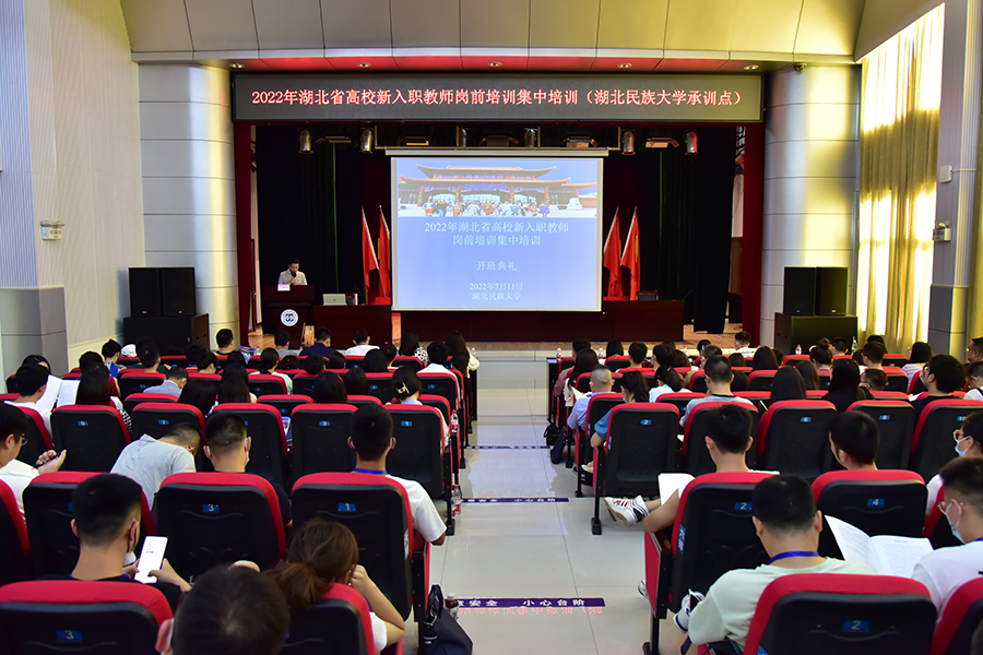 7月11日上午,2022年湖北省高校新入职教师岗前培训365电子娱乐官方网站承训点在学校行政楼1号会议室正式启动集中培训,来自365电子娱乐官方网站、湖北恩施学院、恩施职业技术学院、恩施州广播电视大学、附属民大医院等5个单位的137名学员参加了集中培训开班式,开班式由365电子娱乐官方网站教学质量评价中心、教师发展中心主任谢坤武主持。