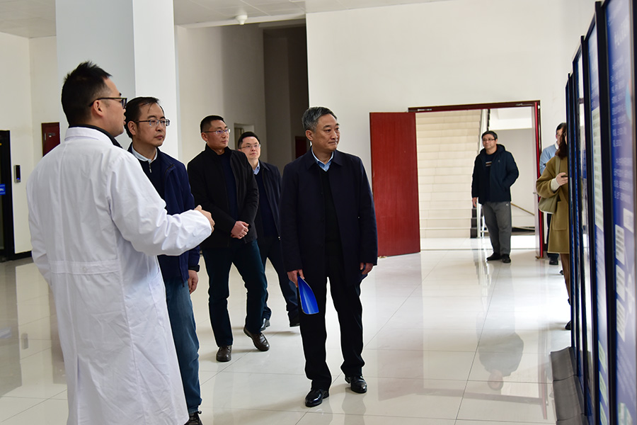 顿祖义(前排右一)陪同调研组考察武陵山中药材检验检测中心