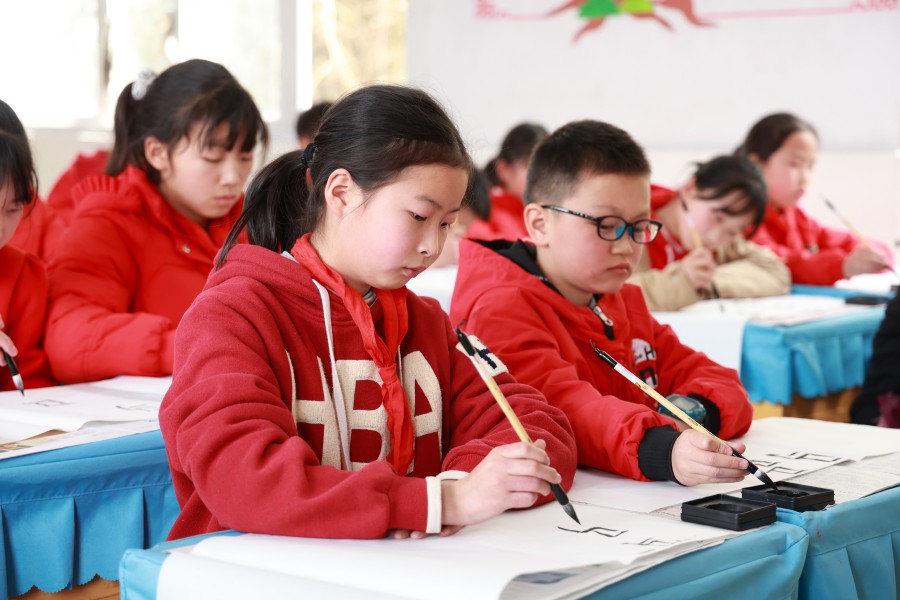 短短一个小时的课程中,两位老师寓教于乐、循序渐进,充分展现自身专业素养与教学经验,培养孩子们的自信与勇气,在潜移默化中提高乡村孩子的语言表达能力与毛笔书法能力。