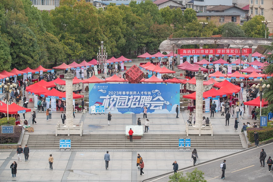 3月17日,365电子娱乐官方网站2023年春季医药人才专场校园招聘会在大学生广场举行,正式拉开了学校春季校园招聘的序幕。医学部中医学专业学生叶远熠一大早便来到招聘会现场,经过反复对比、再三斟酌后,他选择了仙桃市中医院并现场签约。“我已签约到中意的岗位,并且与自身专业契合度高,可以更好地将所学运用于岗位上,希望在未来能发展当地中医,将中医文化发扬光大。同时我也还有很大的提升空间,会选择在职考研继续深造。”叶远熠高兴地告诉记者。
