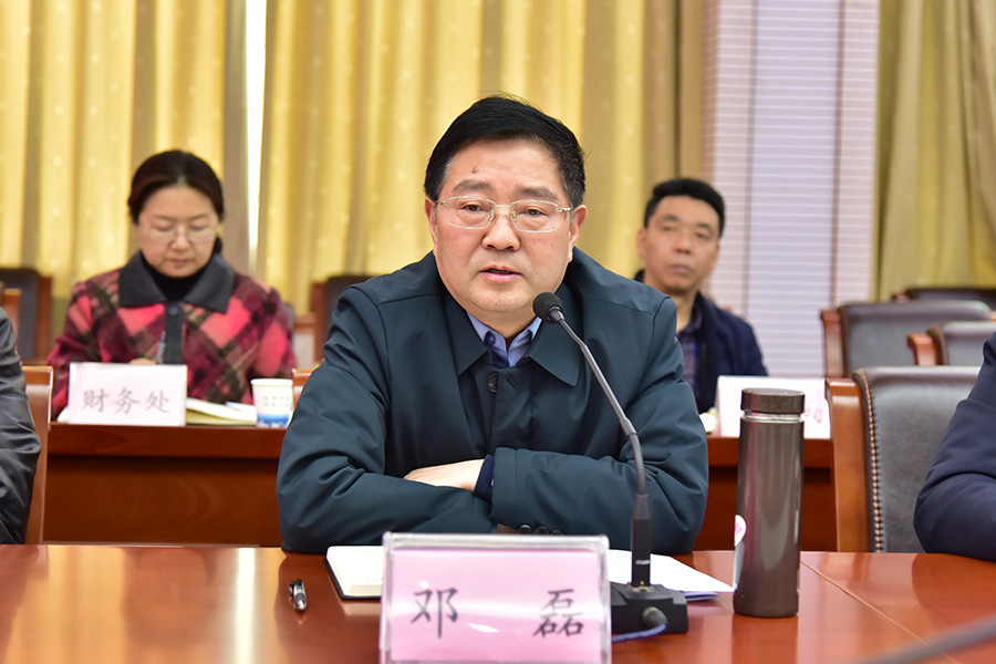 邓磊在讲话中指出,一是要以党的创新理论武装头脑,抓好思想引领。做好党的二十大精神和湖北省第十二次党代会精神的宣传学习工作,推进党的创新理论进课堂、进头脑;加强理论阐释研究,推出一批既有实践深度又有理论高度的研究成果。二是要加强校园文化建设,坚持正确的价值导向。培育和践行社会主义核心价值观,营造良好的学风、教风、校风,重点突出向上向善、民族团结、清廉民大的校园文化建设。三是要落实意识形态责任制,确保学校政治安全。抓好媒体安全、阵地安全和人员安全“三个关键”,以落实意识形态责任制为抓手,不断强化具有执行效能和正向效果的意识形态安全防线。四是要凝练展示学校办学特色,塑造学校良好形象。强化网站建设、外宣工作“两个重点”,认真总结学校的特色和亮点,提升学校影响力,树立良好社会形象。