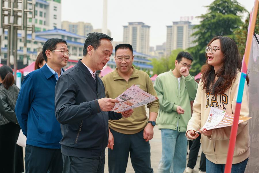 学校党委书记向前进、党委副书记邓磊到招聘会现场指导工作。向前进详细询问了本次专场招聘会的组织开展情况,并与招聘单位代表和学生面对面进行了交流。向前进一行走访了解了部分用人单位招聘需求、就业政策和毕业生求职意向,就进一步开展校园招聘活动、做好毕业生就业工作提出了相关要求,希望学校能够与企业建立紧密的合作关系,为学生提供更多的就业机会,推进毕业生高质量就业。