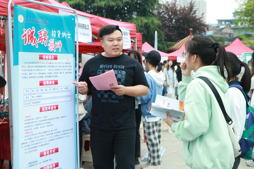 现场除了设置固定展位展板宣传,各招聘单位还通过发放宣传单、面对面交流等方式向学生介绍单位概况、人员需求、薪资待遇等情况。应聘学生手持精心准备的求职简历、毕业生推荐表、实习证明,穿梭于人流之中,积极与招聘人员交流,主动了解用人单位相关概况。