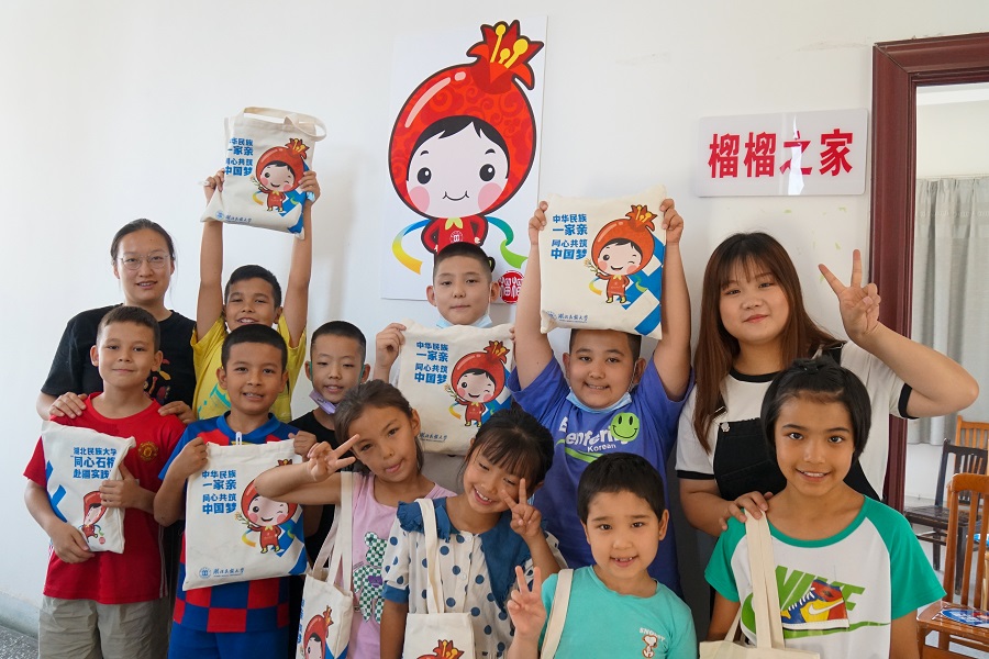 同时,学校开展沉浸体验式实践,实施“乡村行+民族团结”“社区计划+民族团结”行动,以“键对键”“面对面”双线并进方式提升活动接受度,年平均参与3000余人次,让学生从受教育者转变为宣传者。此外,学校联合创作“榴榴”Logo文创品牌,将其广泛用于各类民族团结进步宣传、主题活动及新媒体宣传等用途,积极搭建“一月一节”“一院一品”文化平台,将一系列中华优秀文化展示在校园各处,例如建设民族团结进步阶梯、红石榴隧道等,营造“民大处处石榴红”良好氛围。