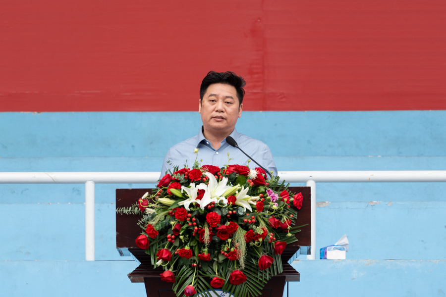 宋强在动员讲话中勉励新生:开训即开跑,希望新生迅速调整心态、进入状态,全身心投入军训中;开跑即赛跑,希望新生发扬拼搏精神,勇于超越自我、敢于挑战自我、乐于锤炼自我。军训教官代表侯力峰作表态发言。