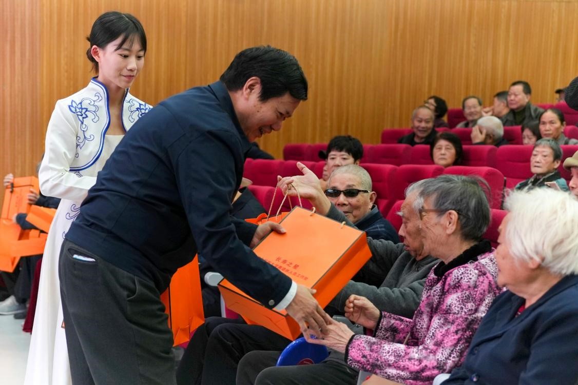 向前进、汪兴平等校领导对八十岁以上老同志进行集中慰问。离退休人员工作处党委书记柳德雄宣读表彰文件,为22名“优秀共产党员”和20名“老年活动积极分子”颁发荣誉证书。