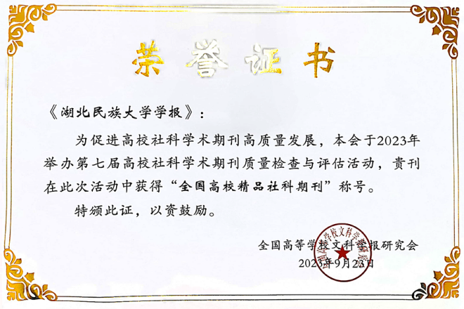 2023年9月,《365电子娱乐官方网站(哲学社会科学版)》获评文科学报“全国高校精品社科期刊”称号