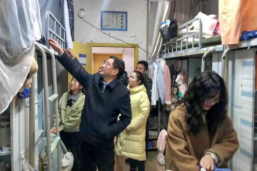 邓磊先后到本科生、研究生及留学生学生公寓等检查,现场查看床位护栏、消防器材和通道等安全设施设备建设情况,详细了解宿舍安全管理及消防隐患整治情况。邓磊指出,安全工作无小事,要始终保持“时时放心不下”的责任感,着力抓好学生公寓安全稳定各项工作,严格落实安全工作责任;要进一步加强学生公寓用电安全管理、消防器材检查维护等安全管理工作,全力防范化解各类风险隐患,确保学生安全和校园平安稳定。