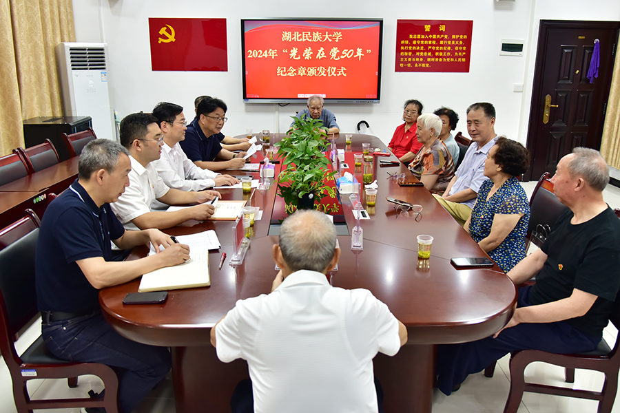 7月1日,学校在离退休工作处会议室举行2024年“光荣在党50年”纪念章颁发仪式。学校党委副书记邓磊出席仪式并为与会老党员颁发了“光荣在党50年”纪念章。