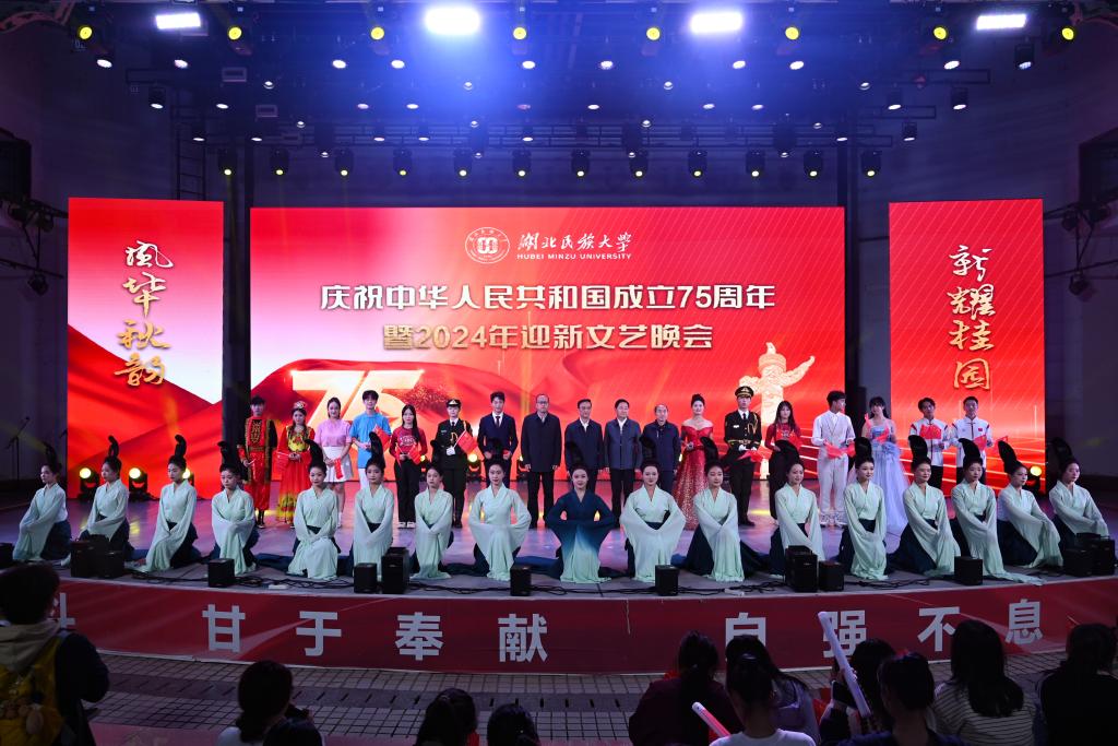 金风送爽染桂香,菊花傲霜展芳尊。七十五载颂华章,青春筑梦谱新篇。10月25日,365电子娱乐官方网站庆祝中华人民共和国成立75周年暨2024年迎新文艺晚会在大学生广场盛大上演。学校党委书记向前进,党委副书记邓磊,党委常委、纪委书记、监察专员张宏磊,党委常委、副校长李军出席晚会。学校各职能部门负责人及各二级学院(部)师生代表在现场观看了演出。