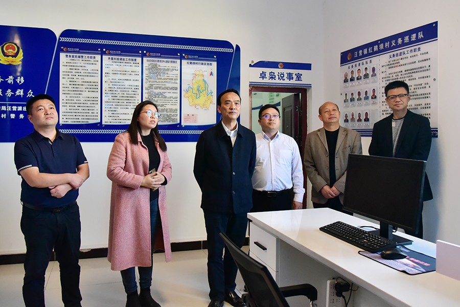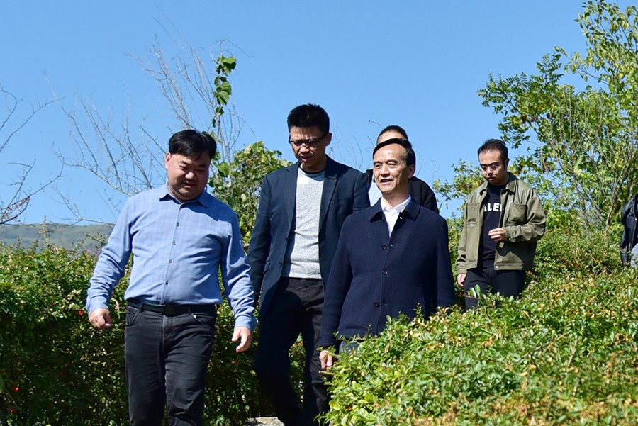 向前进(左三)在熊翔(右三)的陪同下调研红鹤坝村