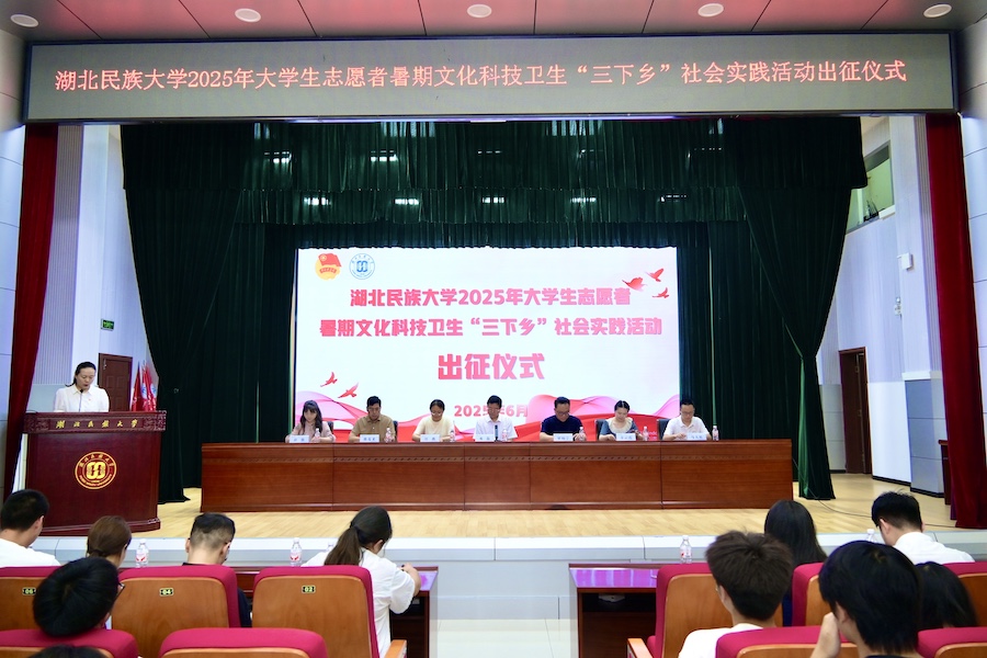 邓磊在讲话中希望同学们深化思想认识,胸怀“国之大者”,在躬身实践中筑牢信仰根基;聚焦实践成效,练就过硬本领,在攻坚克难中展现青春担当;严守纪律规矩,筑牢安全防线,在团结协作中护航实践征程。他希望同学们带着责任出发,带着思考前行,在广袤的祖国大地上,用心用情用力上好“行走的大思政课”,在服务奉献中砥砺初心,在艰苦奋斗中增长才干,以优异的实践成果展现湖北民大学子的青春风采,为推进中国式现代化湖北实践贡献青春力量!