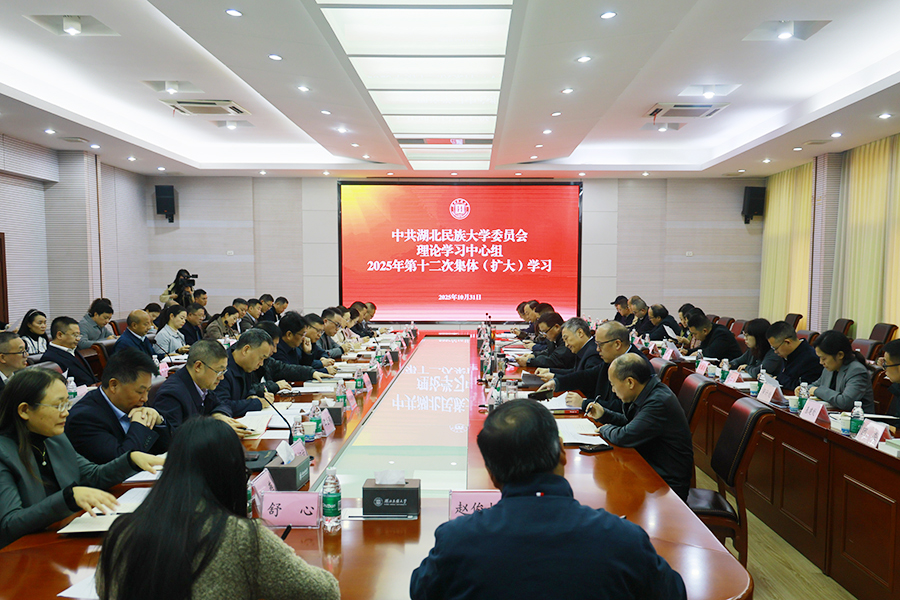本次集体(扩大)学习以“学习贯彻党的二十届四中全会精神,奋力谱写民大高质量发展新篇章”为主题,通过集中领学、集中自学和研讨交流三个阶段,系统学习党的二十届四中全会精神,结合实际思考谋划学校“十五五”发展思路。根据恩施州委关于党委(党组)理论学习中心组学习列席旁听工作的统一部署,州委教育工委巡听旁听组到会列席指导。