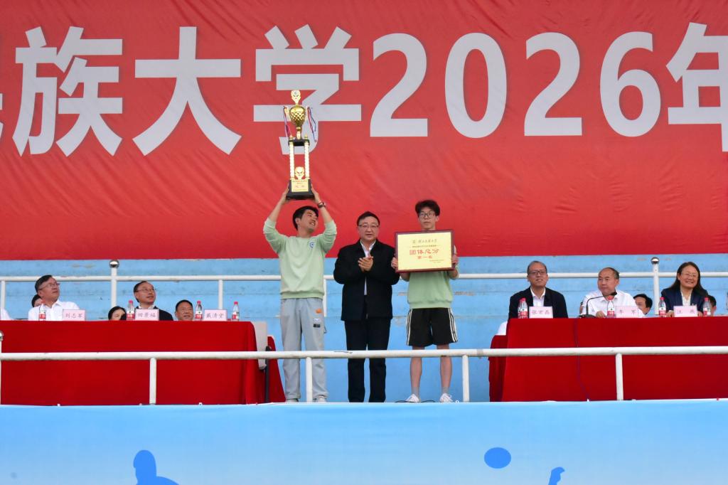 学校党委委员、党委宣传部常务副部长罗翔宇宣布本届运动会宣传工作奖获奖名单。教师教育学院荣获宣传工作一等奖,经济与管理学院、法学院、民族学与社会学学院获二等奖,文学与传媒学院、智能科学与工程学院、马克思主义学院、外国语学院、体育学院获三等奖。
