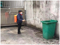 工作人员对家属区、食堂等公共区域进行消毒