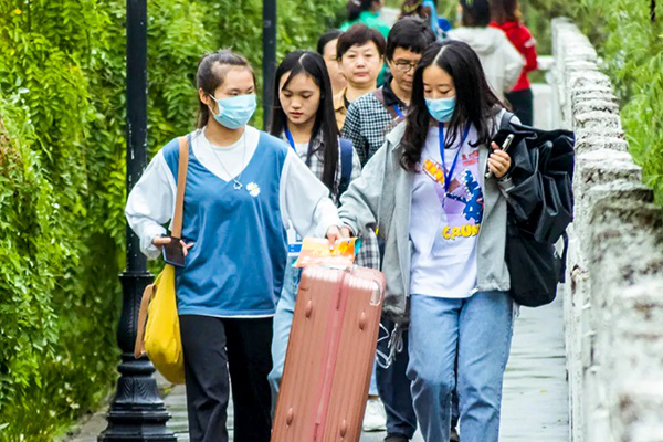 雨后初晴,丹桂飘香。今天是迎新第二天,大家依旧满腔热忱,志愿者工作开展得井然有序,助力迎新顺利收官。从此,晨曦朝露是你,披星戴月也是你,2020级新生将以民大人的身份开启新的人生篇章,愿他们在今后的学习生活中热情经久不减,如今日初见之欢。
