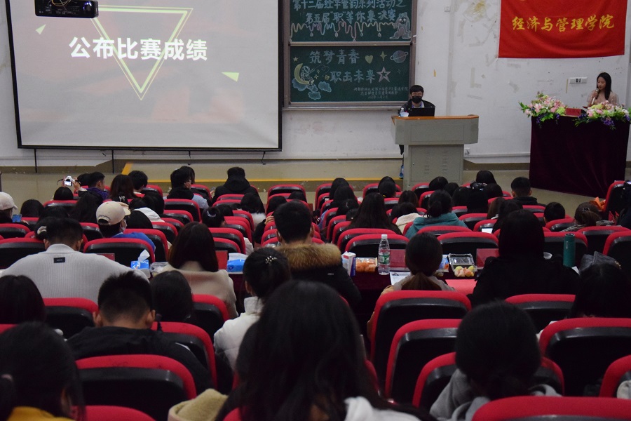 本网讯(通讯员 赵一曼 陈佳佳 吕卓颖)12月2日,经济与管理学院在修远楼5B404教室举办以“筑梦青春,职击未来”为主题的第十二届经华管韵系列活动之第五届“职”来等你决赛。研究生党支部书记向浩,经济与管理学院团总支书记张典,老师文觉敏、刘洁玫、冉炜受邀出席并担任此次比赛评委。