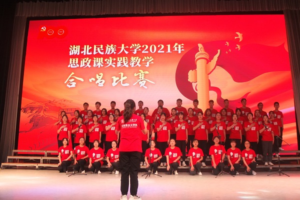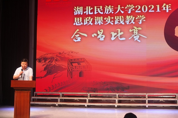 本网讯 6月4日晚,我校2021年思政课实践教学合唱比赛在音舞播厅顺利举行。党委宣传部常务副部长唐敦双、马克思主义学院党委书记罗成富、校团委书记方云霞、党委宣传部副部长万力、学工处副处长徐杰、马克思主义学院副院长张胥、教务处实践教学科科长郑奇应邀出席并担任评委。马克思主义学院部分思政课老师及各参赛学院师生一同观看比赛。
