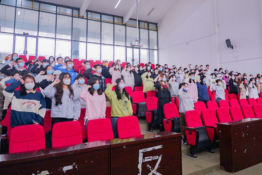 主持人带领青年志愿者宣誓。随后,社会实践与志愿者工作部副部长邱可欣进行志愿者核酸检测培训。培训主要从“登记核验”“棉签分发”“医护协助”“维持秩序”四个方面依次进行讲解。“登记核验”分为健康码登记和身份证登记,志愿者利用核酸检测专用程序进行信息登记及身份核验;“棉签分发”方面,志愿者需要按照信息登记的顺序进行棉签的分发;“医护协助”方面,志愿者主要工作是协同医护人员完成试管收集、做好样本回收;“维持秩序”方面,志愿者需要组织和引导师生排队、登记、完成核酸检测。最后,邱可欣列举核酸工作中可能出现的突发问题并提出相关建议。