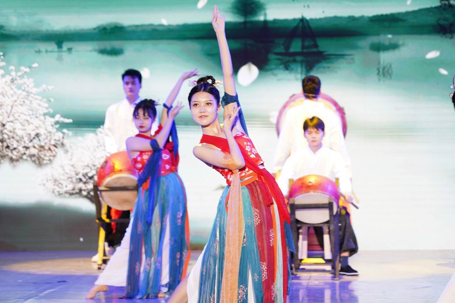 本次晚会采取线上线下结合方式,涵盖歌舞剧、钢琴演奏、歌曲串烧、乐器合奏等多种表演方式。器乐合奏《美丽的神话》包涵古筝、二胡、鼓、笛子多种乐器,清脆悠扬的笛声与浑厚低沉的鼓声碰撞出奇妙的火花,而乐声又与背景电影短片《神话》交相呼应,呈现出一场婉转悠扬又饱含情感的表演。民族特色节目《土家族围鼓》,表演者身着土家族传统服饰,手持鼓、钹、大锣、小锣,演唱土家族歌谣,演奏曲调激烈欢快、高亢激越,充分展现土家族人民的热情。《火把节之夜》,表演者身穿彝族传统服饰,配合激扬的鼓点翩翩起舞,舞姿活泼动人,传神展示出彝族火把节的热烈景象。四手联弹动漫钢琴曲串烧,两位表演者配合默契,配合背景中剪辑的《柯南》《樱桃小丸子》等动漫,勾起观众童年记忆,赢得阵阵掌声与欢呼。晚会在年级大合唱《醉鬼的敬酒曲》中落下帷幕。
