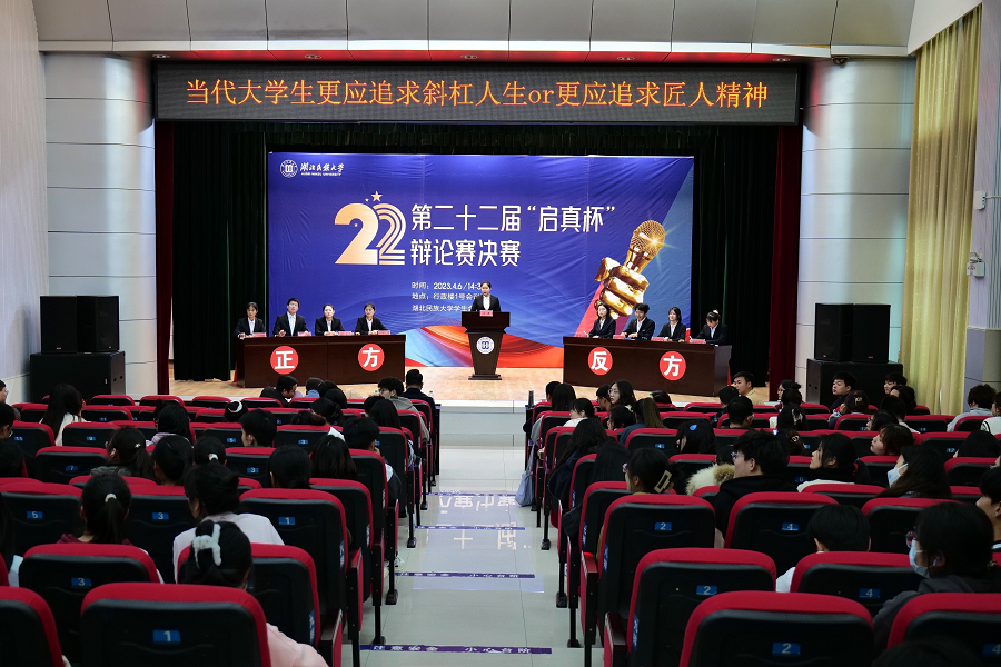 来自教师教育学院的正方代表队与来自生物与食品工程学院的反方代表队围绕“当代大学生更应追求斜杠人生还是匠人精神”这一辩题展开辩论。
