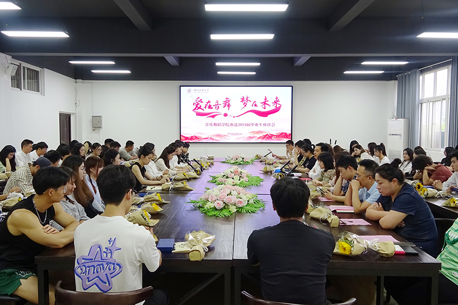 为欢送即将踏上新征程的2024届毕业生,6月17日,音乐舞蹈学院举办“爱在音舞,梦在未来”欢送2024届毕业生座谈会。学院在家领导班子成员、各科室负责人、各系部主任、全体辅导员和毕业班班主任、毕业生代表等70余人参加座谈会,党总支书记张蕊主持会议。