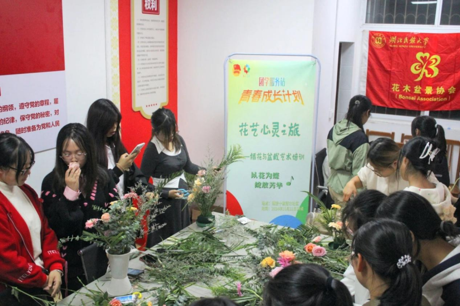 文学与传媒学院举办的“镜头语言探索班”摄影技术指导课邀请了广播电视编导专业教师姚爱华从点、线、色彩、构图等方面为大家讲解摄影知识,帮助摄影爱好者深入理解和掌握镜头语言,提升摄影技术水平。医学部举办的“护航生命·‘救’在身边——急救知识培训”为学生们介绍了急救的相关知识,并用人体模型为同学们演示了如何开展心肺复苏。音乐舞蹈学院开展的“改造计划——大学生妆容礼仪培训”则以富有趣味的形式为同学们现场演示化妆技巧及礼仪规范动作。林学园艺学院开展的“花艺心灵之旅——插花与盆栽艺术培训”通过讲解插花技巧及设计思路,让同学们现场体验插花的乐趣。