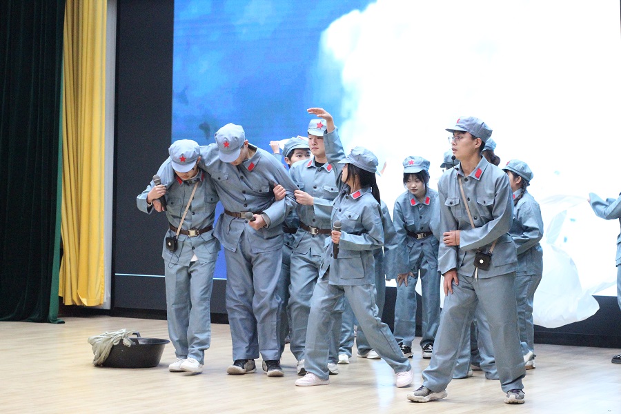 2024级4个团支部对“长征精神”“红旗渠精神”“抗洪精神”和“脱贫攻坚精神”进行红色情景剧演绎。学生党支部通过合唱和朗诵的方式表演了《歌唱我的祖国》。学生崔钰婕和林学园艺学院周飞翮带来了朗诵节目《采蒲台的苇》。