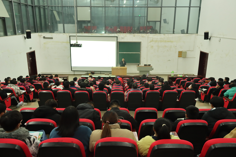 12月14日,州政协副主席谭建军在修远楼5B404报告厅为学生讲授专题思政课。信息工程学院部分学生干部和入党积极分子到场聆听。