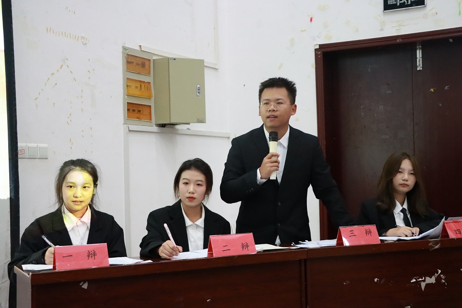 范生彪点评。他首先对双方辩手的表现予以肯定,同时也对这次活动的不足之处提出建议。他表示,论题需要反复推敲思考,辩手在辩论时应当紧扣本队观点进行辩论。他希望学生努力学习,提高自身思辨能力。