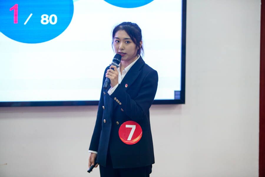 文学与传媒学院一号选手陈章表示,在学习方面,核心专业课成绩名列前茅;在实践创新方面,文学作品成果达十余项;在服务社会方面,她多次参与支教等公益活动,并呼吁大家关注特殊群体的幸福和生活状态。